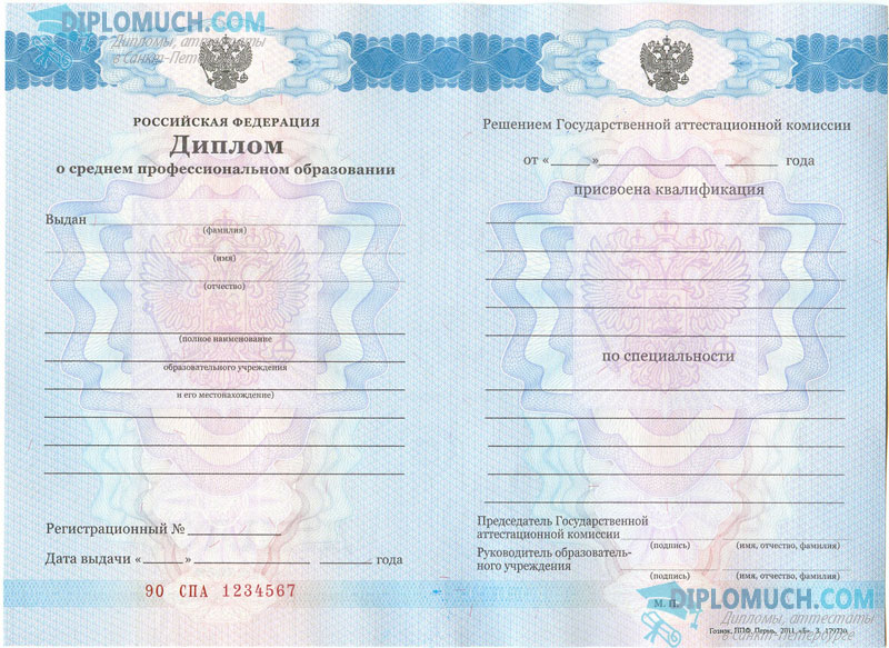 На нашем сайте Вы можете купить диплом о среднем специальном (профессиональном) образовании в Санкт-Петербурге и других регионах России. Ниже на образцах представлены бланки документов различных лет, с которыми мы работаем. Купив диплом СПО у нас, Вы получите документ, на 100% отвечающий всем требованиям относительно его внешнего вида: бланк государственного образца, защитные элементы, информация о Вашем образовании в точном соотнесении с учебным заведением и его стандартами на момент получения документа.